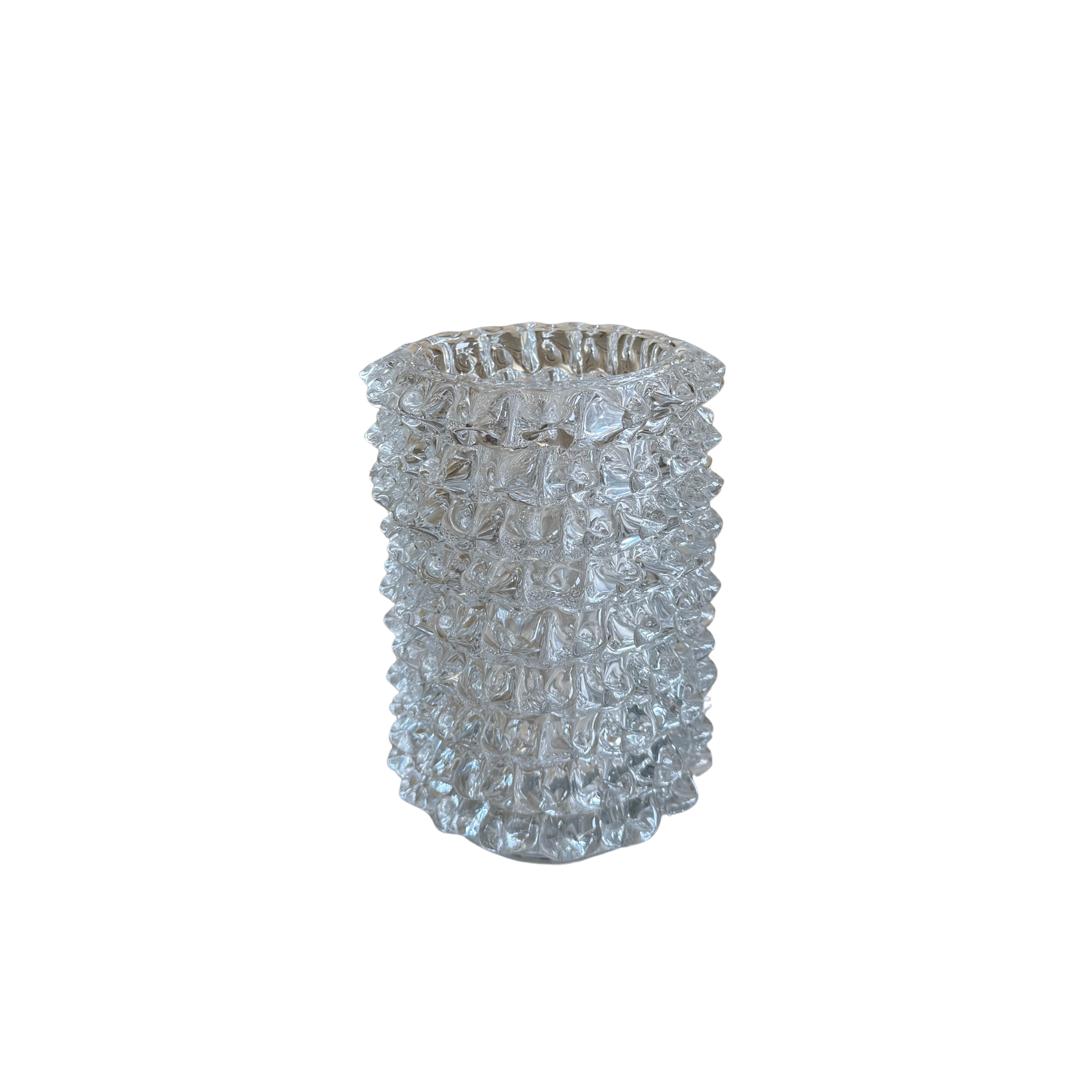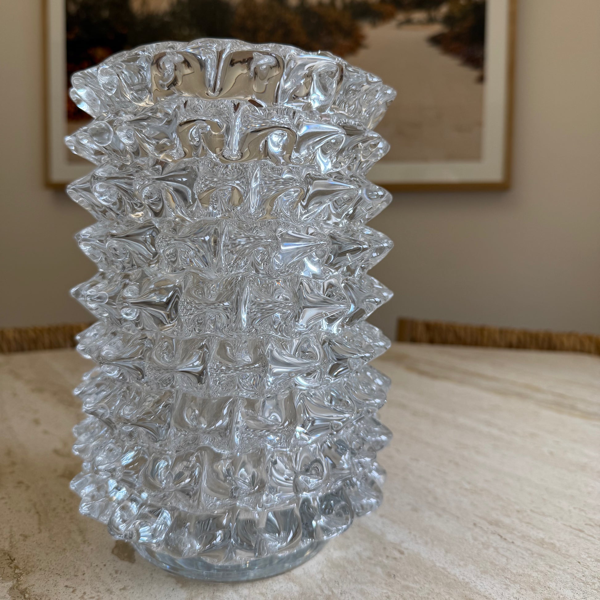Modern glass vase with spikey detail reminiscent of sought after murano vases.