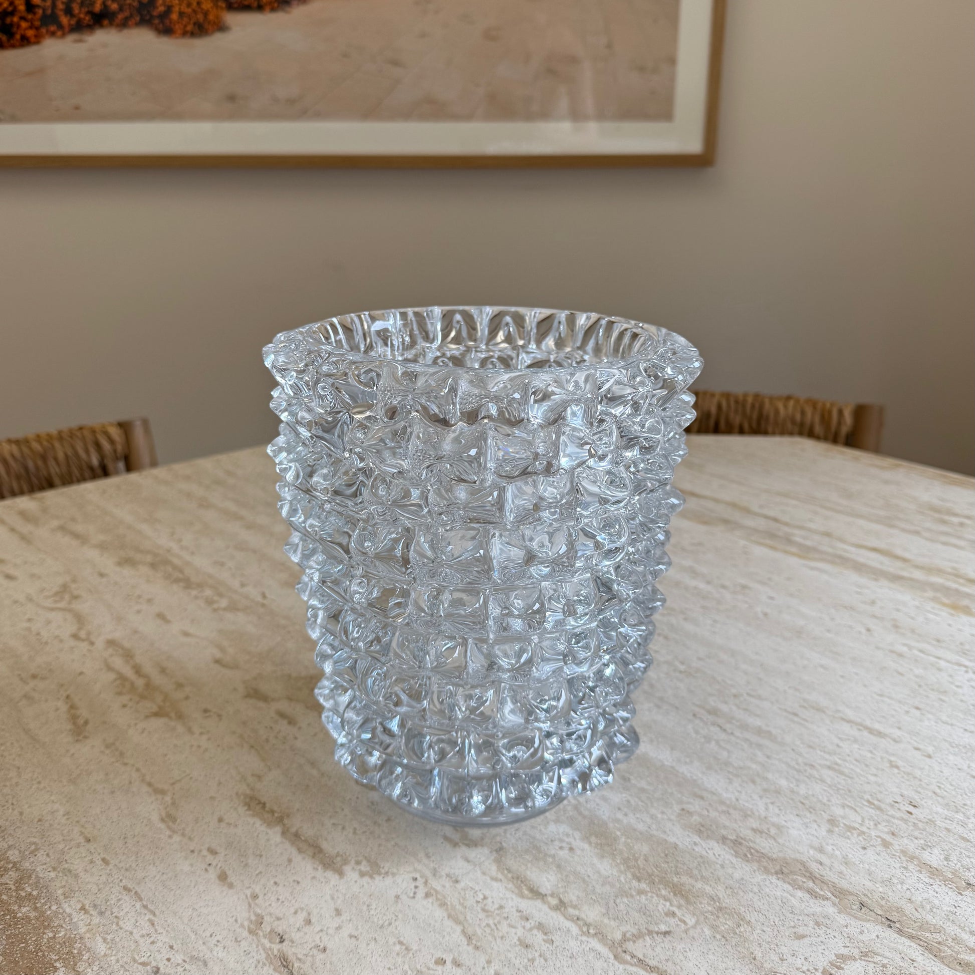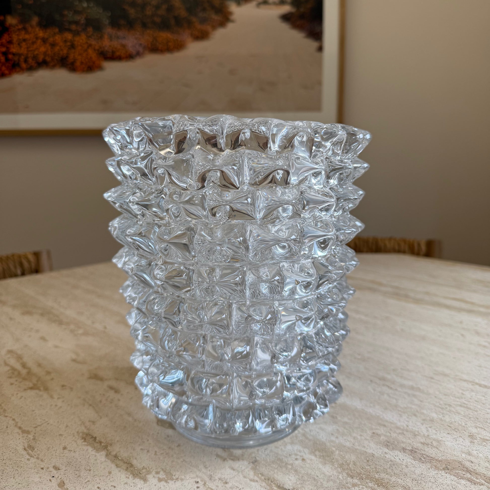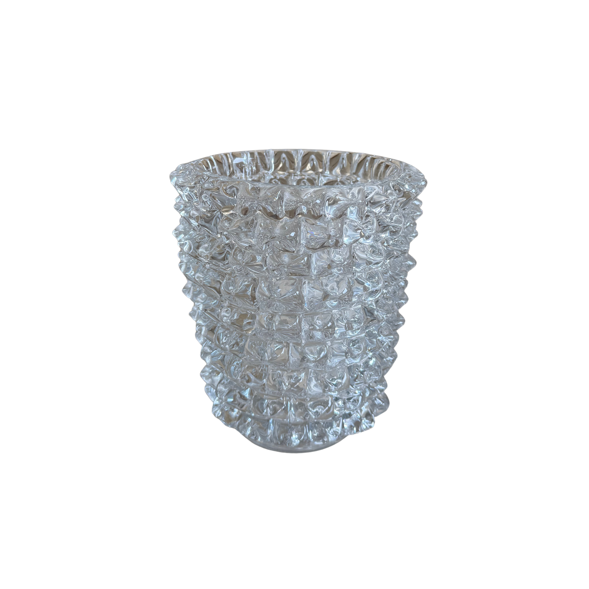 Modern glass vase with spikey detail reminiscent of sought after murano vases.